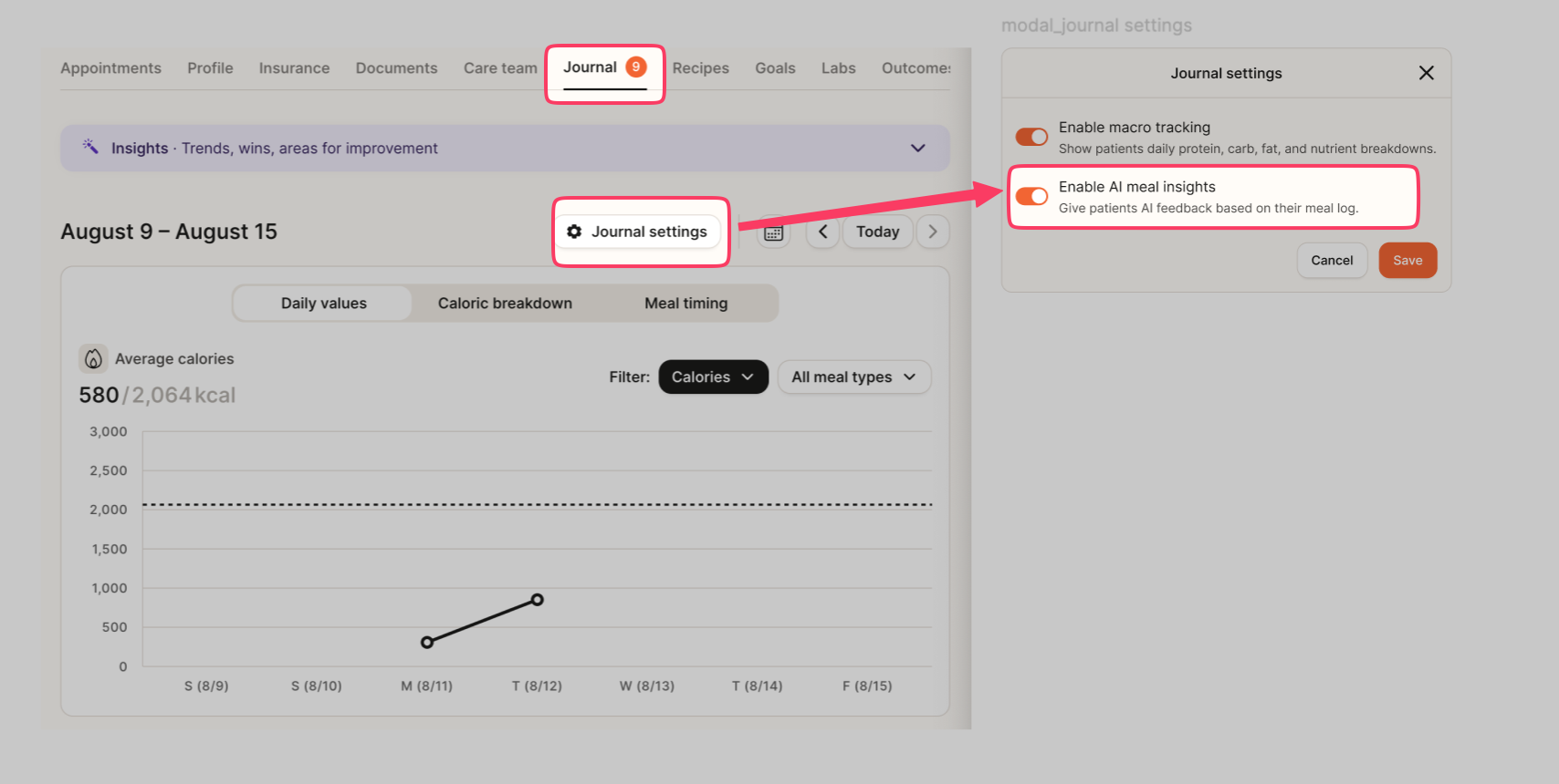 RDs can disable the feature by going to a patient's Journal -> Journal settings -> toggling off AI meal insights: