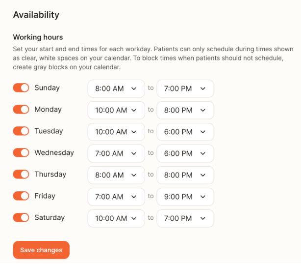 Aim to offer more open slots than your weekly appointment goal to account for cancellations and no-shows. Adding extra availability—especially mornings, evenings, or an occasional weekend—helps patients find care sooner and increases your chances of hitting your weekly goal.